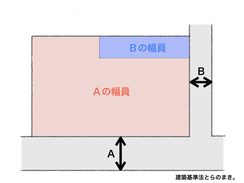 2つの図面を重ねると、塗っていた2つが重なり、濃くなっている部分がありますよね。その濃い部分が『2A緩和が使えない範囲』です。逆に、その他の部分はすべて『2A緩和が使える範囲』となります。