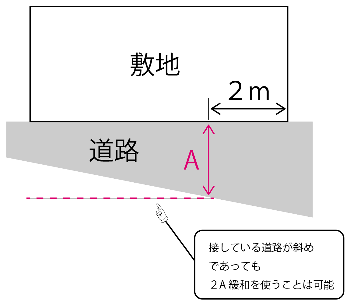 接している道路が『斜め』の場合、2A緩和はどうなる?