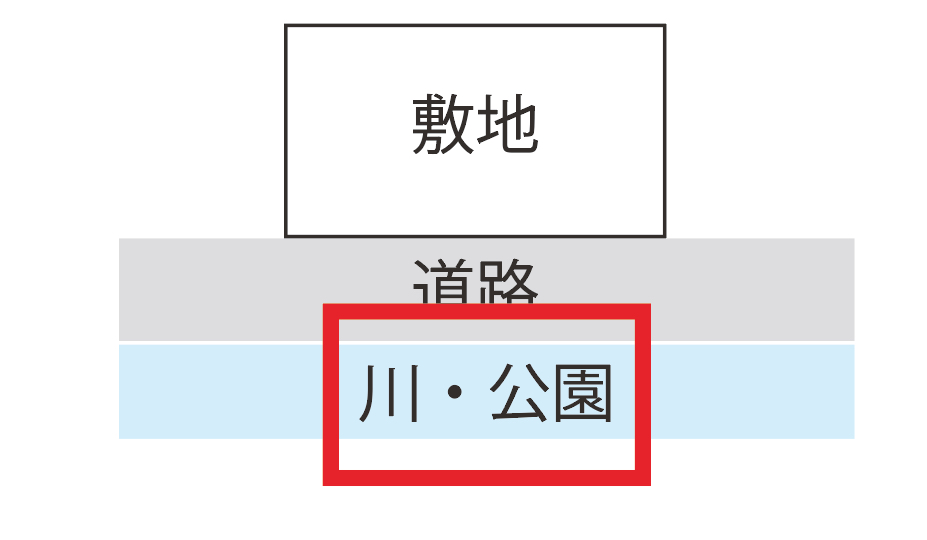 • 道路の反対側に川等がある場合
