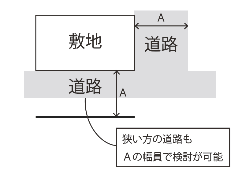 2A緩和 幅員の異なる2以上の道路に接している場合