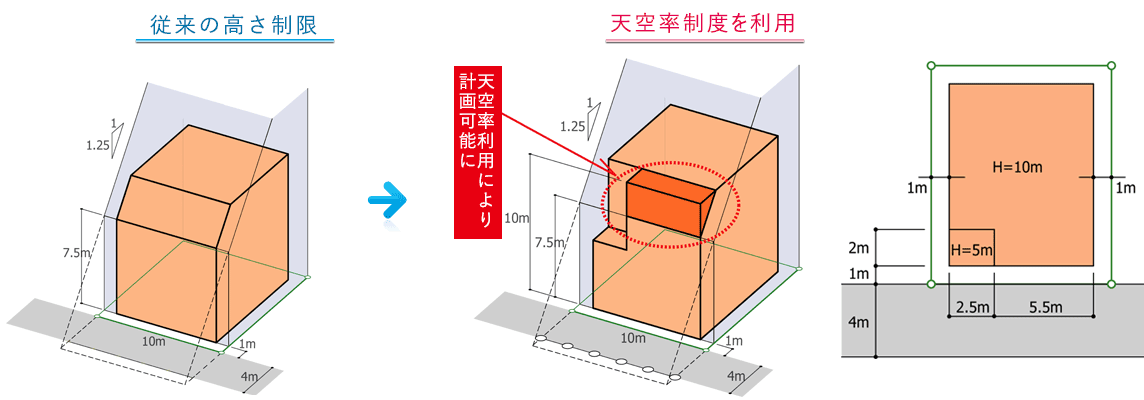 これって、建築物を後退すればするほど、高い建築物が建てられるようになるってこと?