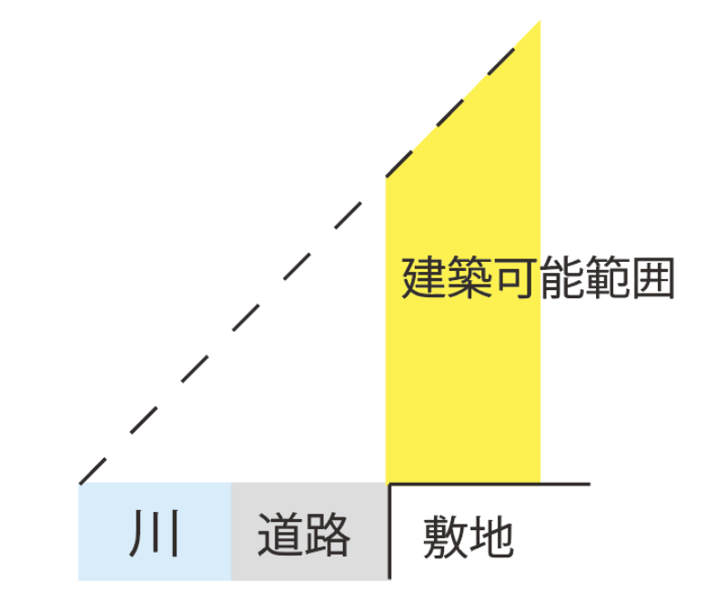 道路の反対側に川・公園・水路・通路・線路等がある場合、その反対側の境界線からの距離で道路斜線制限を算定することが可能