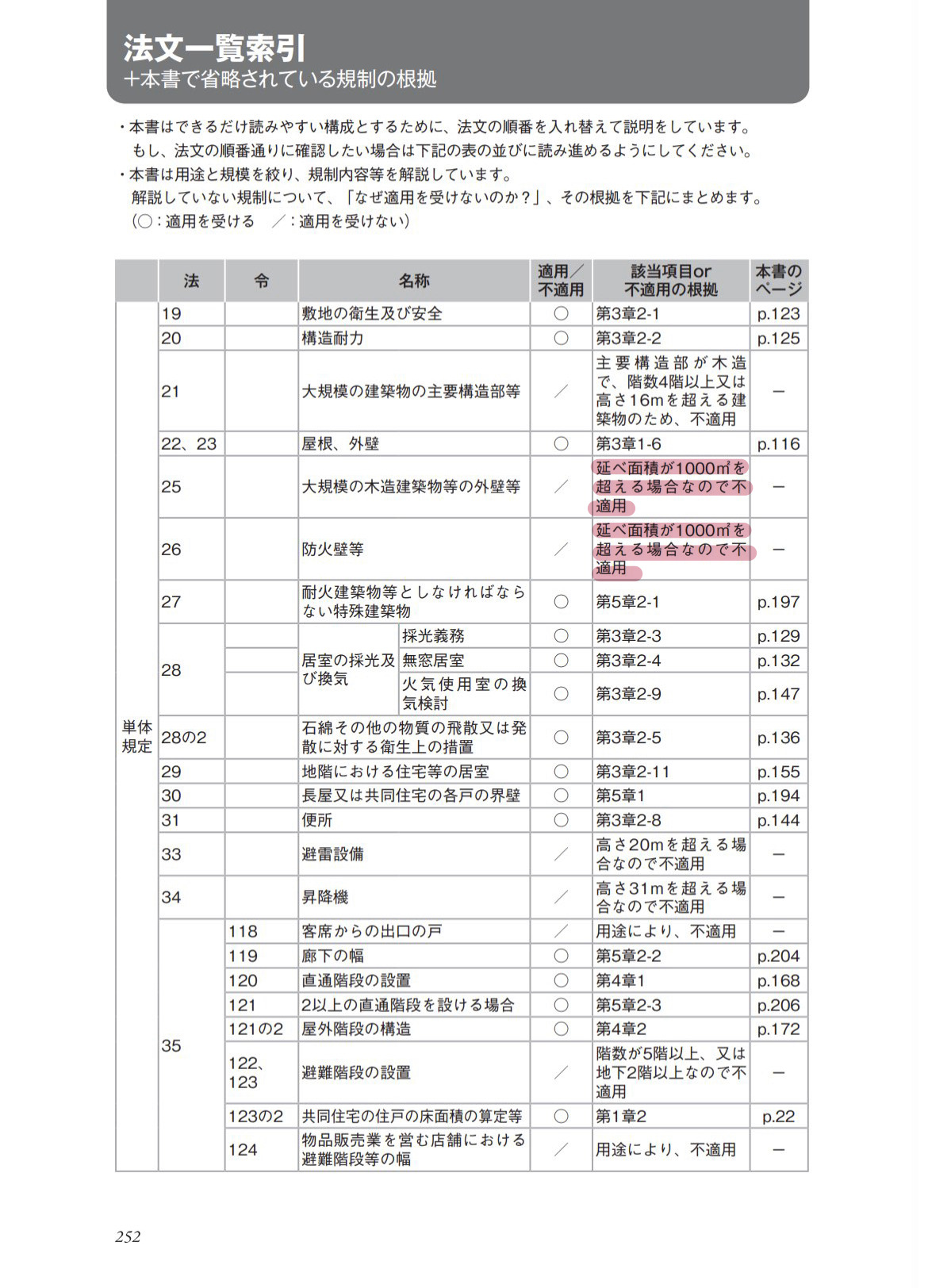 逆引き表というものが付いています。これによって、用途・階数・規模から適用になる規制を絞り込むことができます!