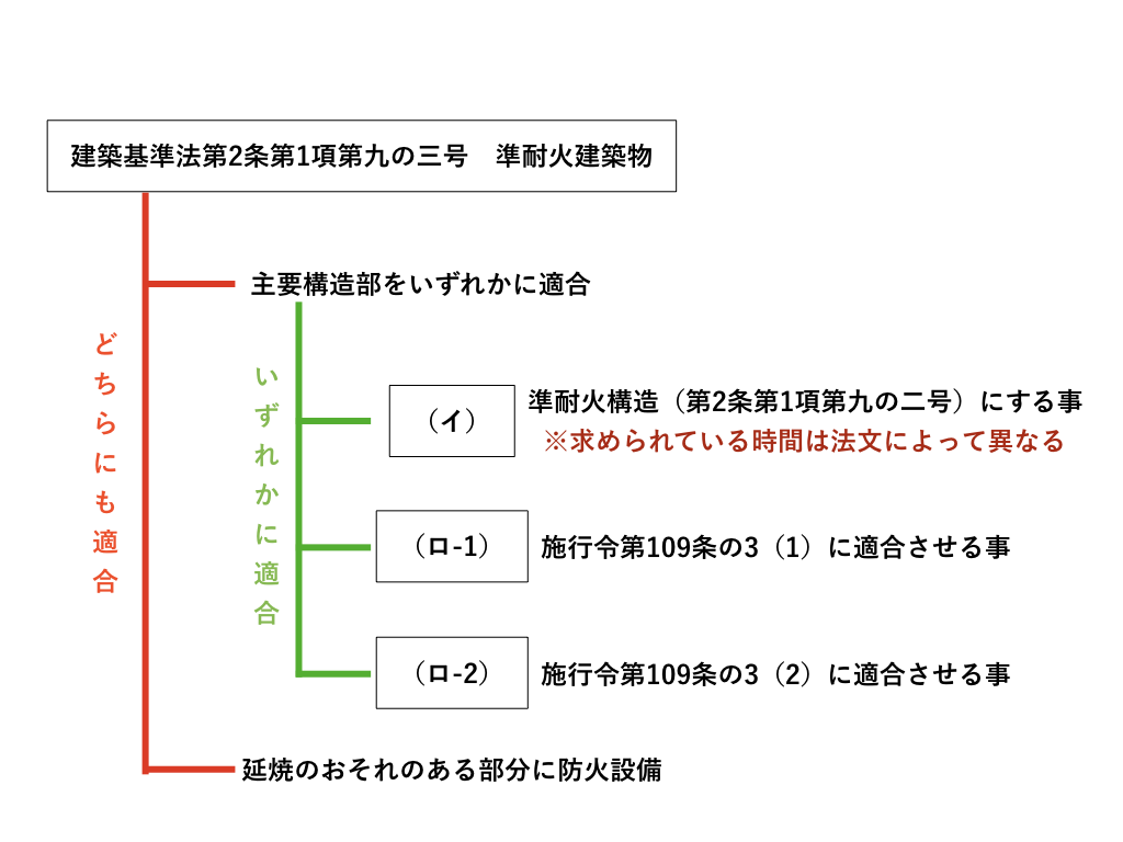 『イ凖耐』とか『ロ準耐』は、『主要構造部等に所定の基準に適合』の部分の適合のさせ方が異なります。