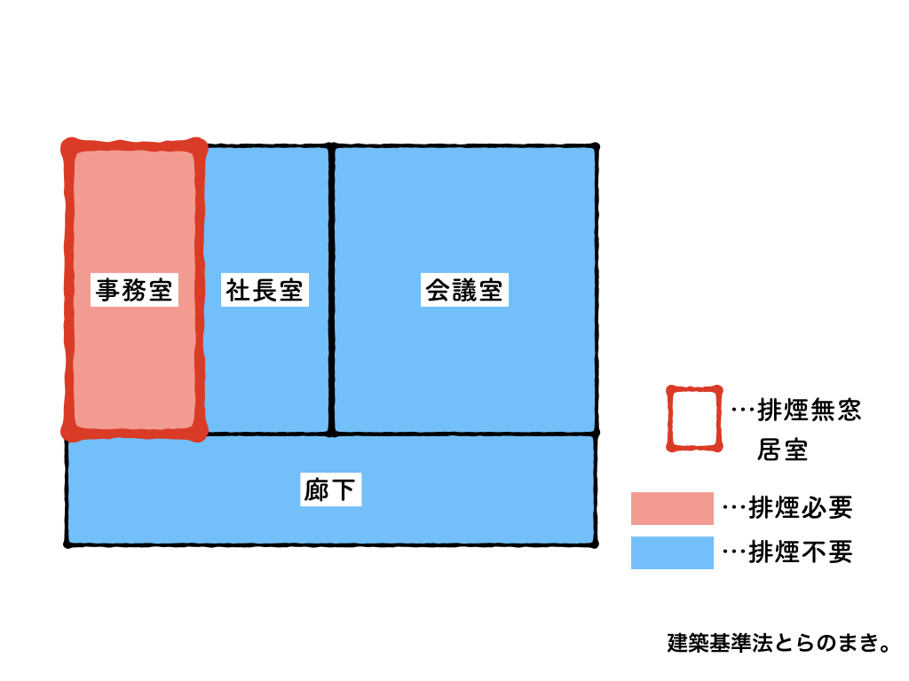 事務所の一部屋が排煙無窓になる場合