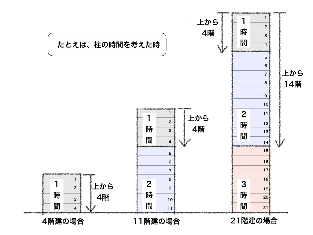 さて、ここで何故下階の方が時間が長いのかを考えてみましょう。