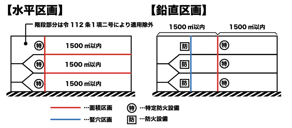 面積区画は、竪穴区画と兼用可能。その場合、水平区画をした方が計画しやすい