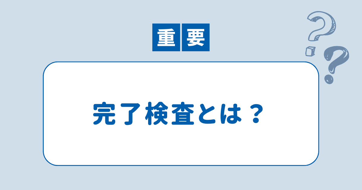 [chat face=”悩む.001.jpeg” name=”” align=”left” border=”gray” bg=”none” style=”maru”]完了検査ってなに?