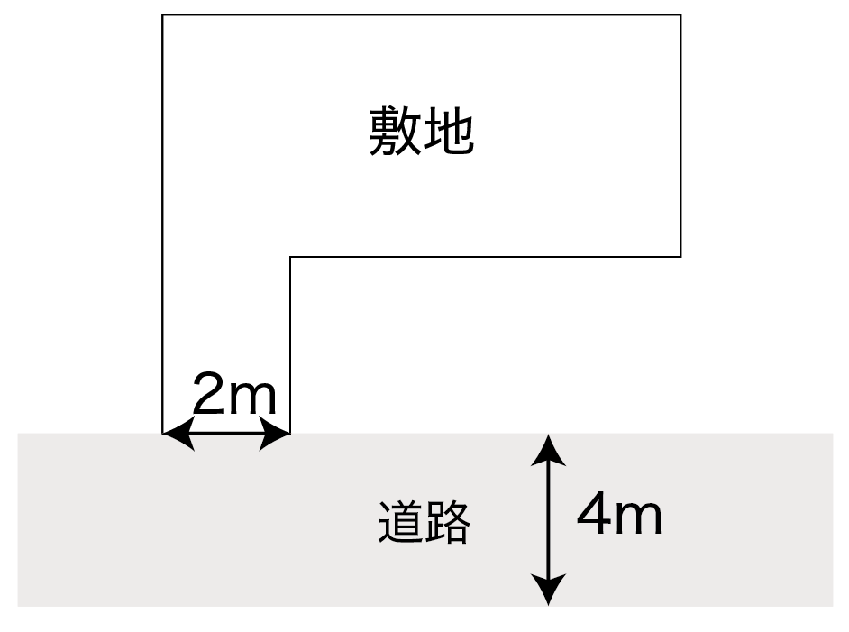 ✔️接道義務とは、幅員4m以上の建築基準法上の道路に、敷地が2m以上有効に接していること