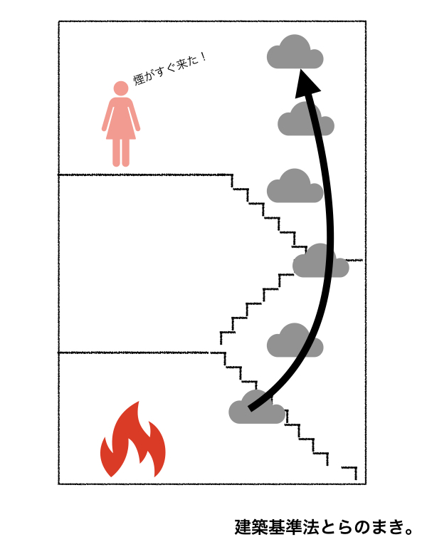[jin_icon_questionbox]屋外階段だったら、煙も外に抜けていくし、竪穴区画は不要なんじゃないの?