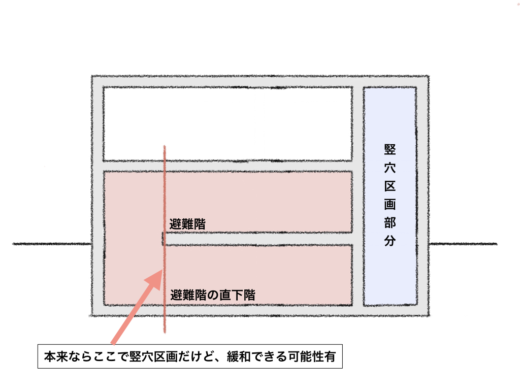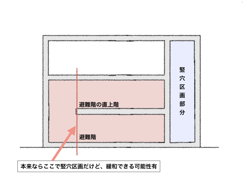 竪穴区画には、住宅用途や避難階とその直上階・直下階に使える緩和が存在する